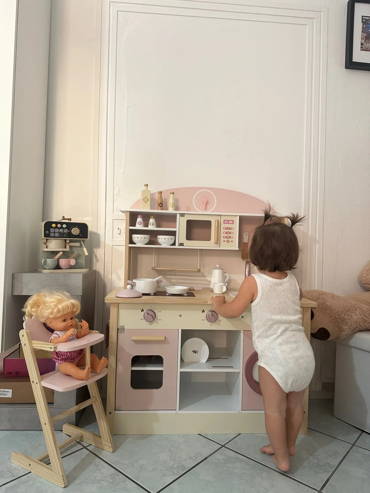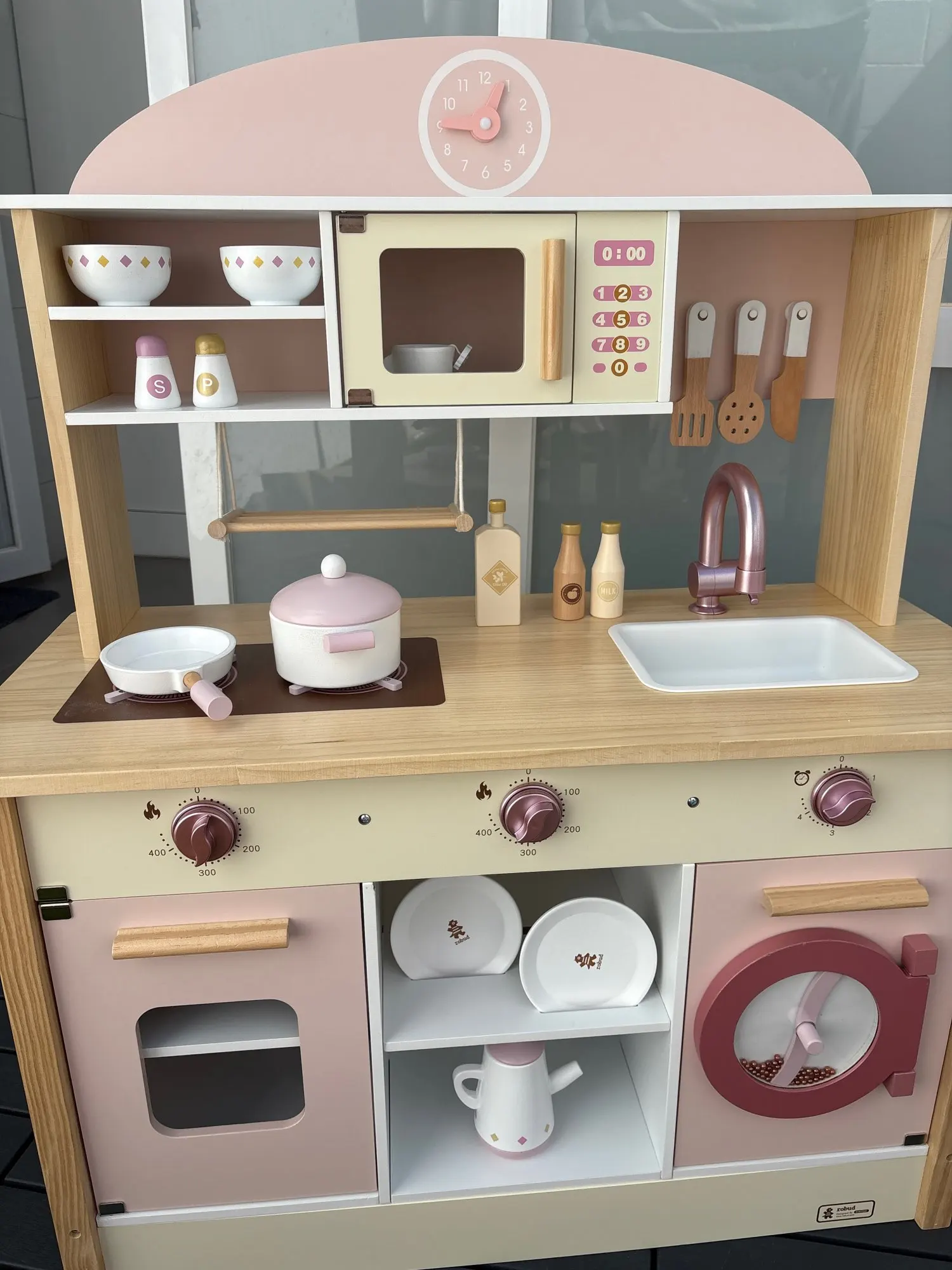 This realistic pretend play kitchen promotes creativity, fine motor skills, and social development. With satisfying clicking knobs, vivid details, and a modern design, it’s both a stunning playroom centrepiece and a thoughtful gift for birthdays or holidays, bringing imaginative fun to every little chef’s world.