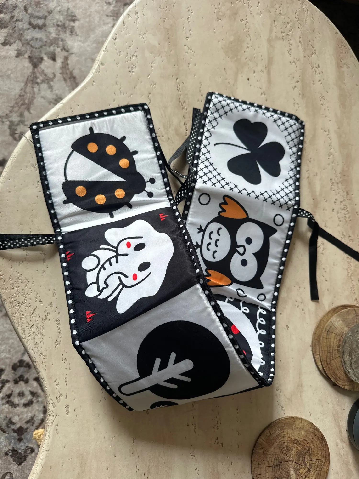 Introduce your baby to the world of sensory play with our high-contrast black and white cloth book, perfect for newborn visual development. The bold patterns help stimulate the retina and optic nerve, supporting your little one’s early brain growth.