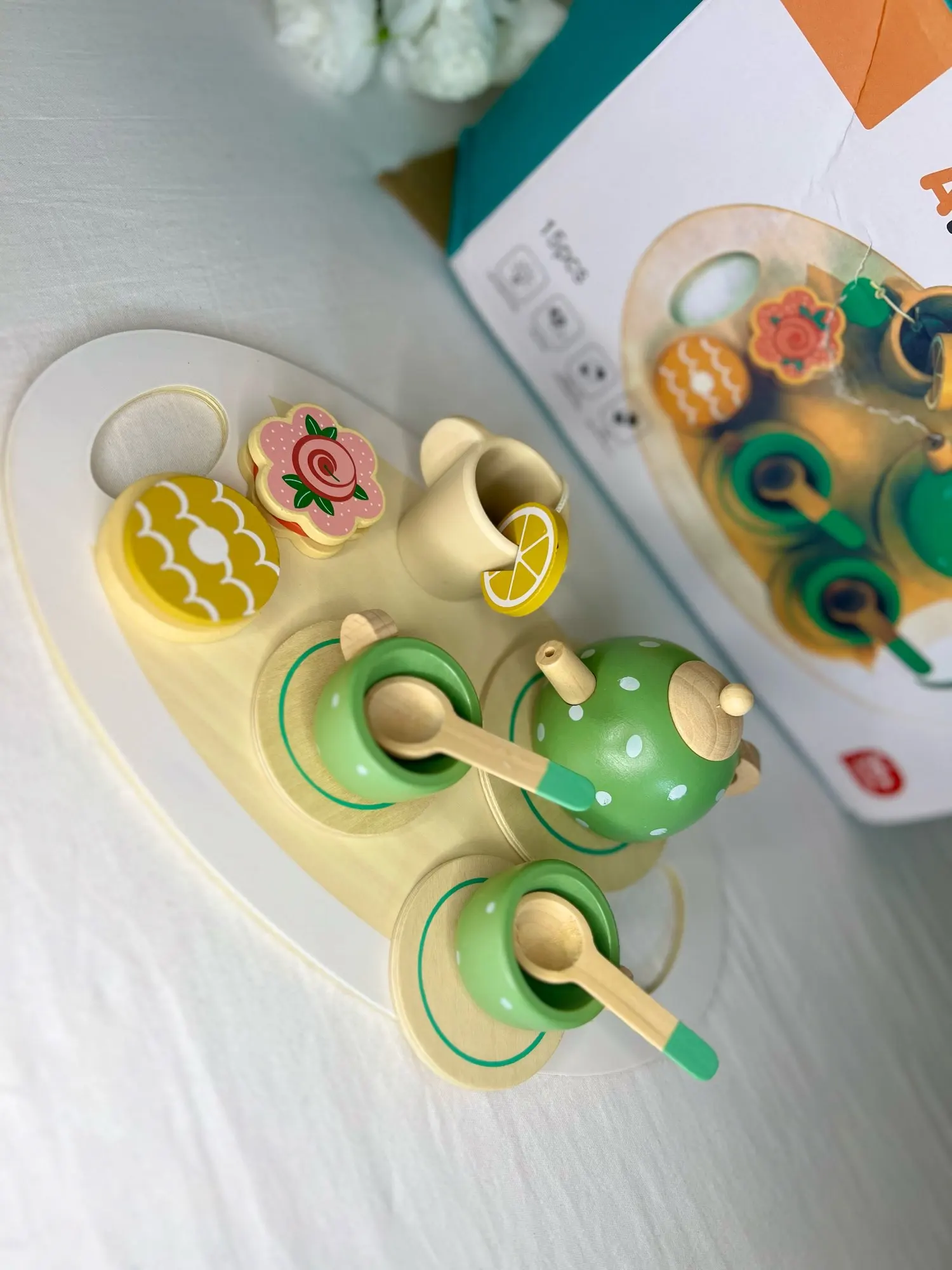 A beautifully crafted wooden tea set designed to inspire imaginative and sensory play.